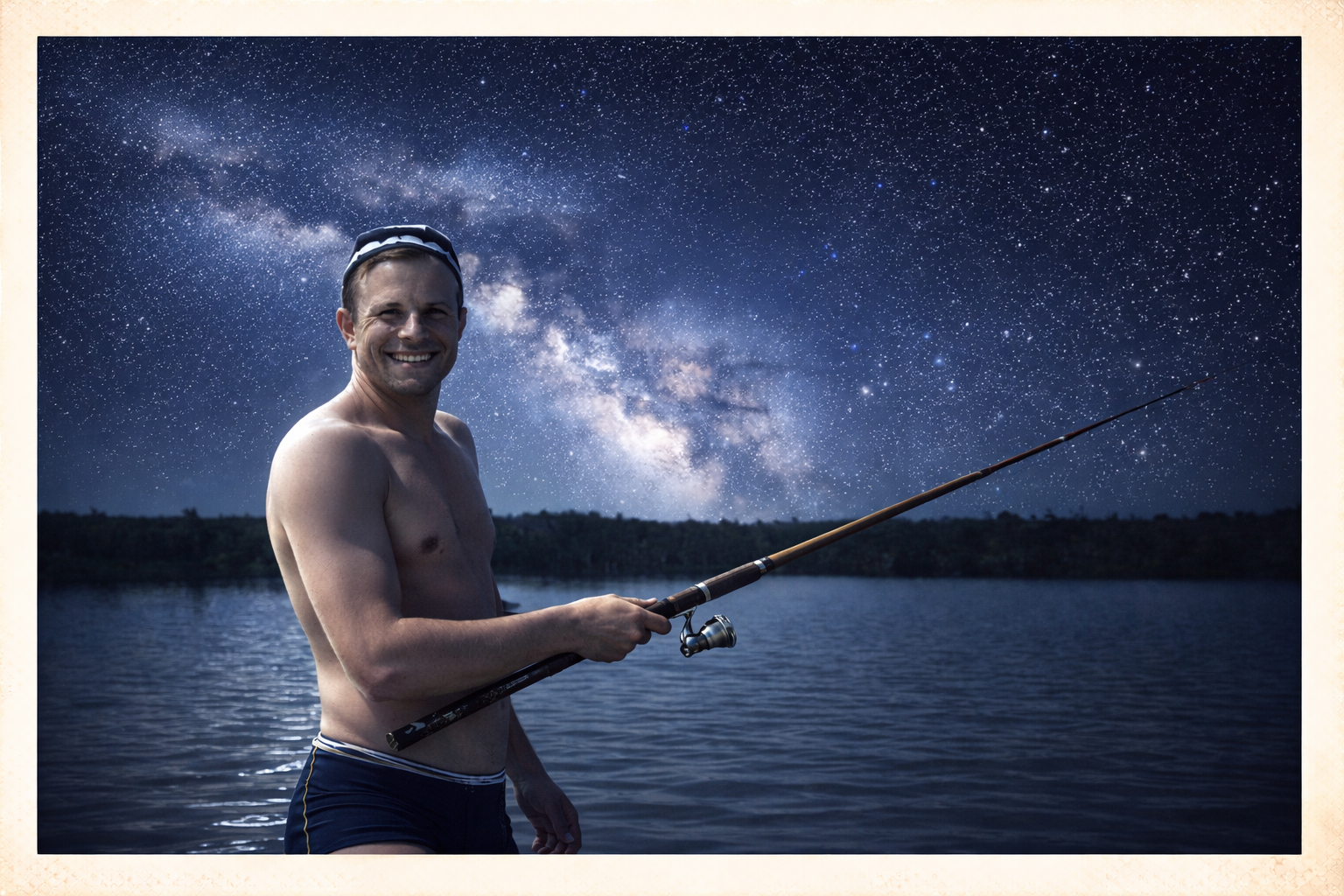 Гагарин на рыбалке, полароид, 2061г.