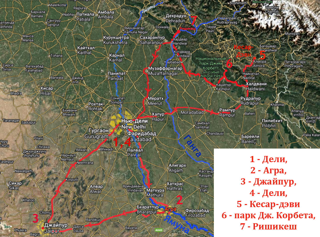 Это так называемый золотой треугольник — города Дели, Агра и Джайпур. И дальше — на север, в сторону гор.