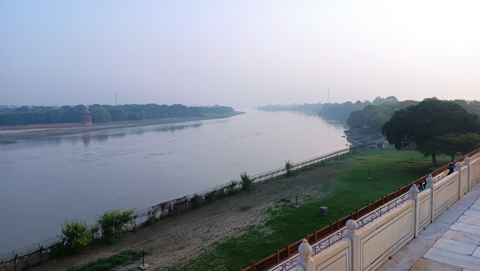 вид из Красного форта на Тадж Махал и долину реки Ямуна