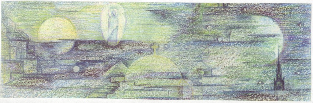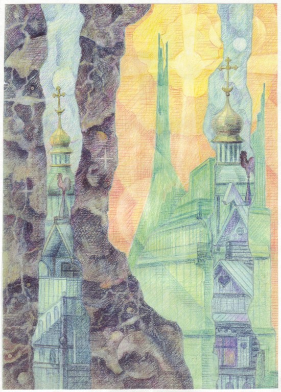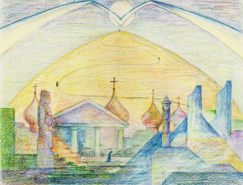 Крупнейшее из средоточий — Небесный Кремль, надстоящий над Москвою. Нездешним золотом и нездешней белизной блещут его святилища. Моря светящихся эфиров — это души стихиалей, сияющих красками, непредставимыми для нас, омывают там сооружения, которые отдалённо можно было бы уподобить громадам лазурных и белых гор.