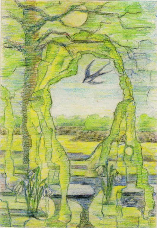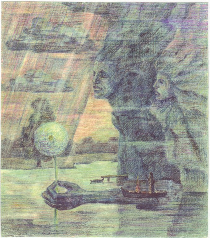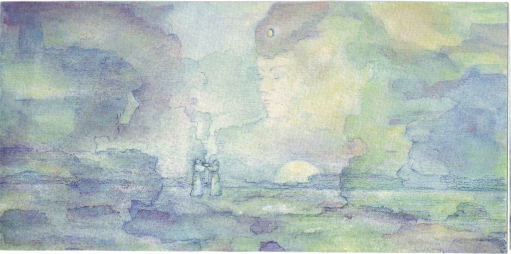 Событие, которое антропоморфным шифром наших понятий может быть отмечено как первое явление Яросвета во плоти в Небесной России и его встреча с Навною там, имело место в 10 — ом столетии. Буря, вызванная этим в метаисторическом мире, трудно поддается сравнениям, ибо уже само понятие радостной бури кажется нам искусственным. То было низлияние метаэфирных потоков и потоков астрала, подобных клокочущим водопадам света. Демиургу сопутствовали нисходившие из Ирольна или притекавшие из других метакультур ликующие человекодухи — те, кому предстояли потом воплощения на Русской земле с невидимыми коронами родомыслов, праведников, гениев и героев. Стихиали встречали Яросвета как посланца Божьего и великого творца, которому предстоит среди них, над ними и с ними творить нечто, выходившее за круг их постижения, но внушавшее их вещим душам безотчётное преклонение и восторг. Навна приняла его в блаженных лесных просторах Святой России как долгожданного жениха.