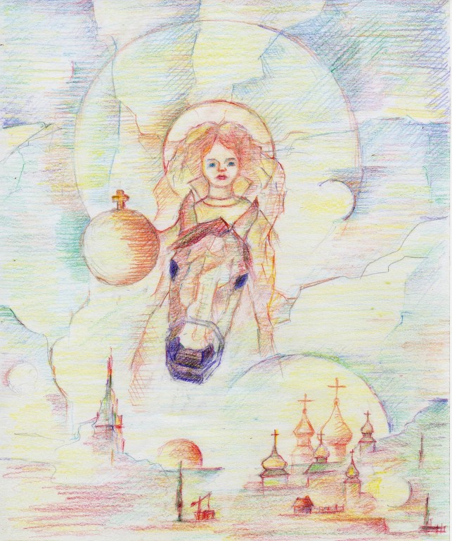 А над мета-Петербургом, высоко в облаках того мира, высится грандиозное белое изваяние мчащегося всадника: это — не чьё-либо личное изображение, а эмблема, выражающая направленность метаисторического пути. Здесь пребывают синклиты Украины, Грузии, Армении. Теперь к этому затомису начинает примыкать и синклит народа болгарского.