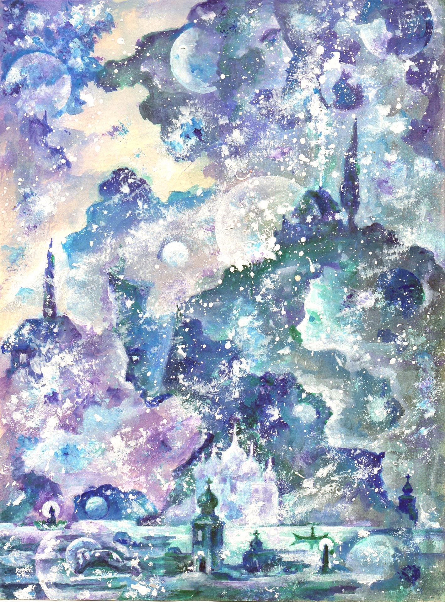 … Древние леса и прозрачные реки, люди, спящие у костров, и другие люди — народы близких и дальних стран, утренние города и шумные улицы, храмы со священными изображениями, моря, неустанно